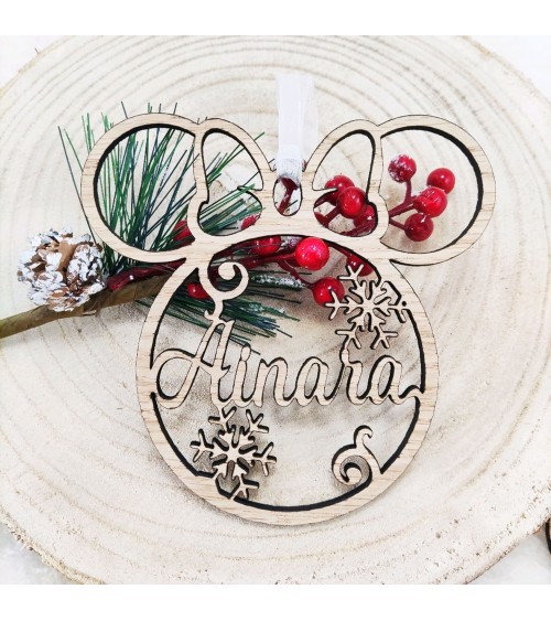 Precio 4,90 €Bola de Navidad diseño de Minnie con Copos de Nieve realizada en madera de roble. Perfecta para regalar en Bola de Navidad diseño de Minnie con... -