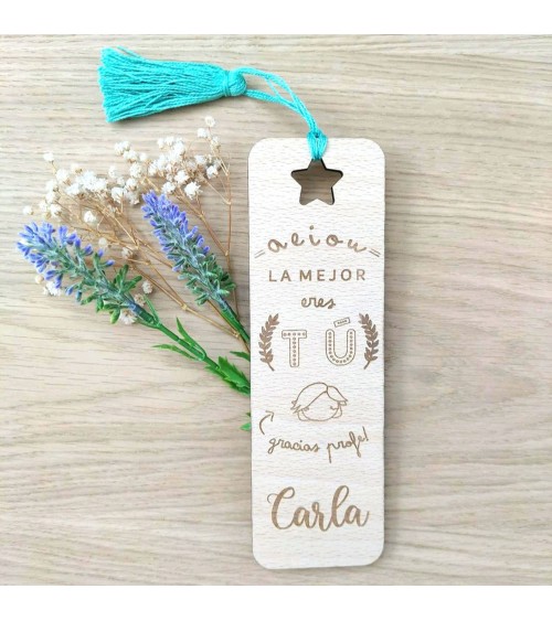 Precio 7,00 €Marcapágina en madera de Haya Perfecta para regalar en el fin de curso o la orla a los profesores. El marcapágina llevará el nombre del profesor,... -