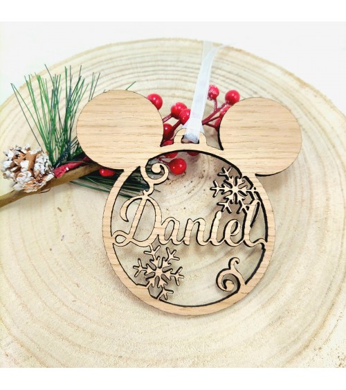 Da un toque mágico y divertido a tu árbol con nuestra bola de Navidad con silueta de Mickey o Minnie, elaborada en madera de roble de alta calidad....