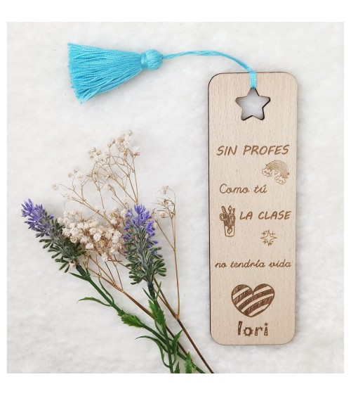 Marcapágina flor Precio 7,00 € Marcapágina en madera de Haya Perfecta para regalar en el fin de curso o la orla a los profesores. El marcapágina llevará el nombre del profesor,...