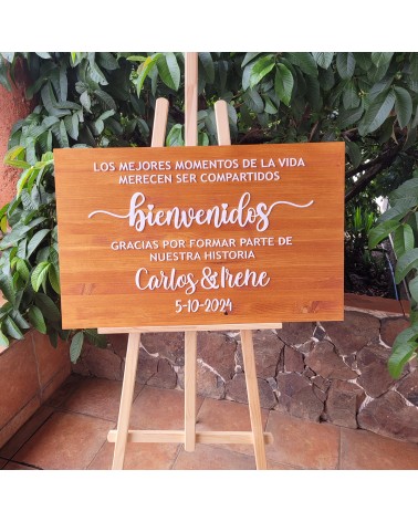 No olvide guardar su personalización para poder añadirla al carritoCartel de bienvenida, que manera tan bonita de recibir a los invitados.