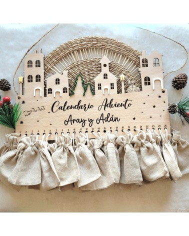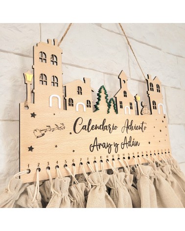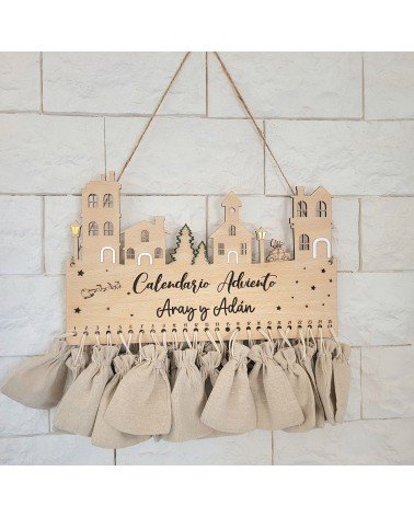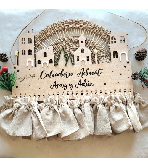 No olvide guardar su personalización para poder añadirla al carritoVive la ilusión de la Navidad cada día con nuestro calendario de adviento artesanal, realizado en madera de haya de 4 mm, grabado con detalle mediante corte láser y acompañado de bolsitas para que puedas añadir un pequeño detalle diario: chuches, mensajes, juguetes, chocolates o actividades familiares.