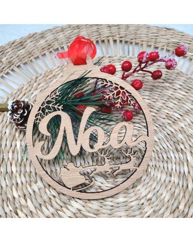 Añade un toque elegante y tradicional a tu árbol con nuestra bola de Navidad en madera de roble, decorada con un bonito diseño de trineo y copos de nieve. Su acabado natural y su estilo invernal la convierten en una pieza perfecta para cualquier hogar.