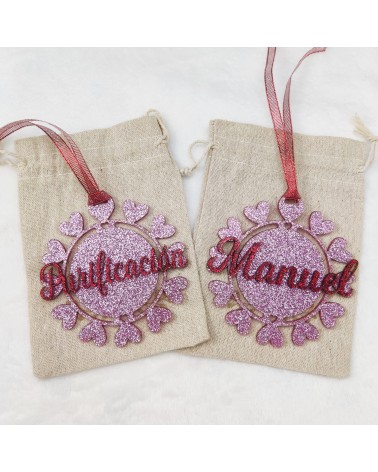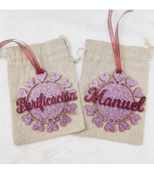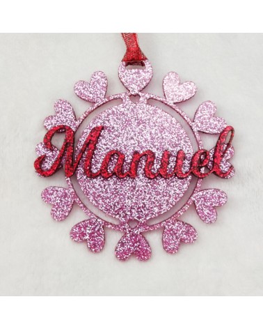 Material de la bola: Base en metacrilato glitter de 3mm y nombre en metacrilato glitter de 3mm.. (Varios colores disponibles)