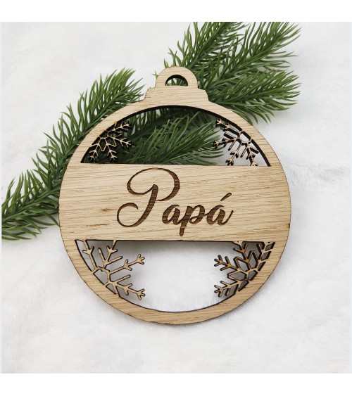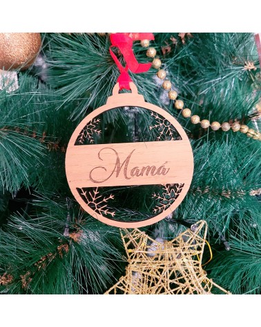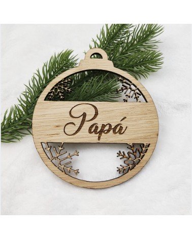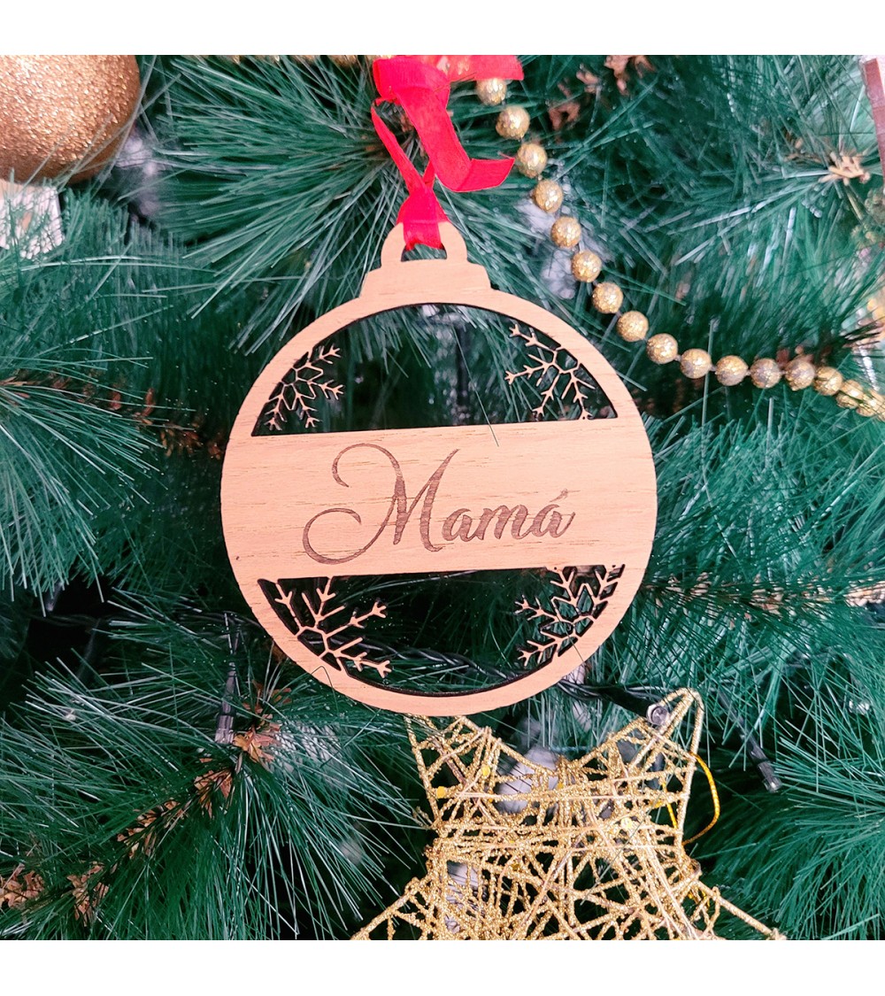 Bola de Navidad Copos de Nieve de Madera con nombre grabado