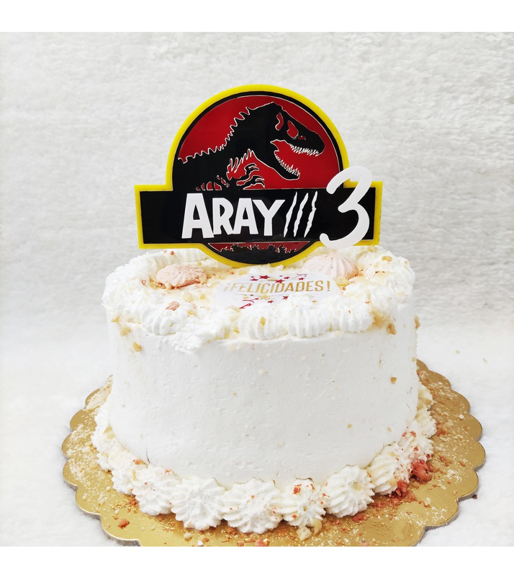 No olvide guardar su personalización para poder añadirla al carritoTopper de tarta con diseño de jurassic , realizado en dos capas de metacrilato de 3mm.