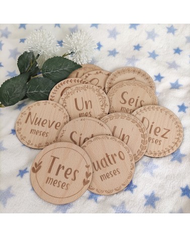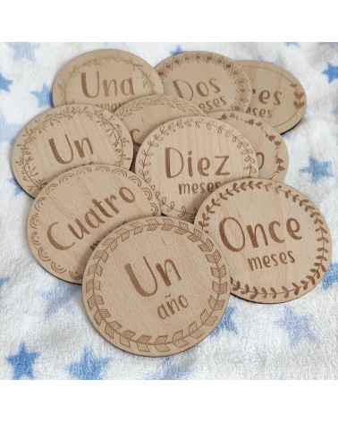 No olvide guardar su personalización para poder añadirla al carritoCumplemeses modelo Natural, realizado en madera de haya.