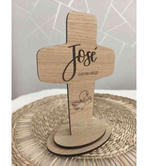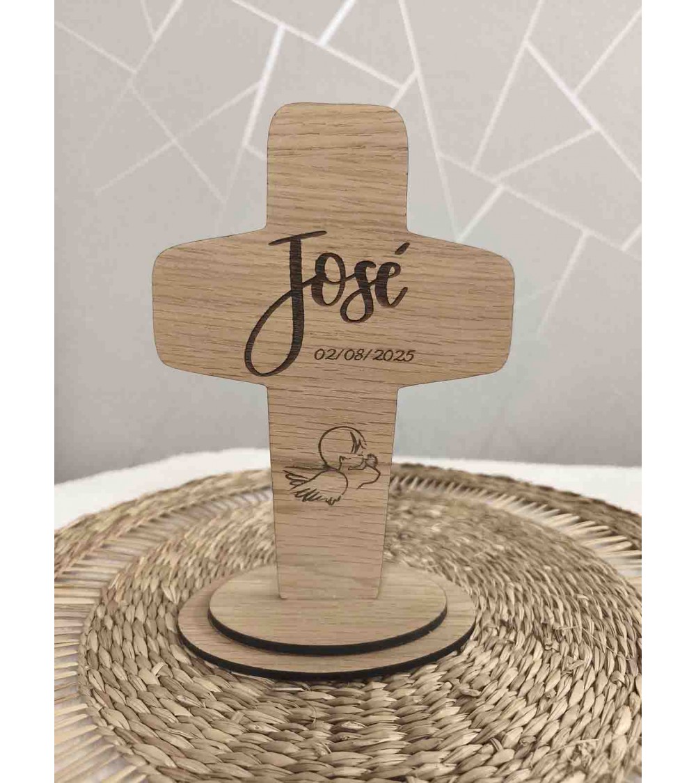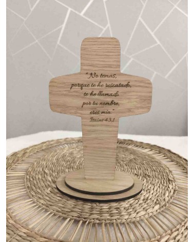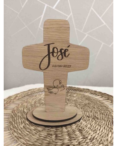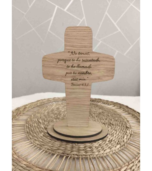 No olvide guardar su personalización para poder añadirla al carritoCruz decorativa elaborada en madera de roble rechapado de 4 mm, con un diseño elegante y delicado que resalta la veta natural de la madera. Cada pieza está grabada a láser con gran precisión, lo que garantiza un acabado nítido y duradero.