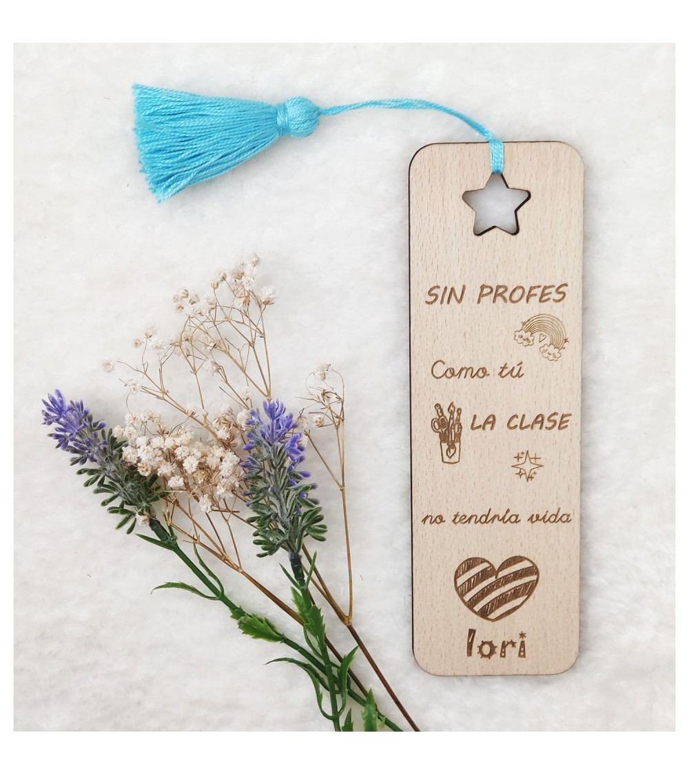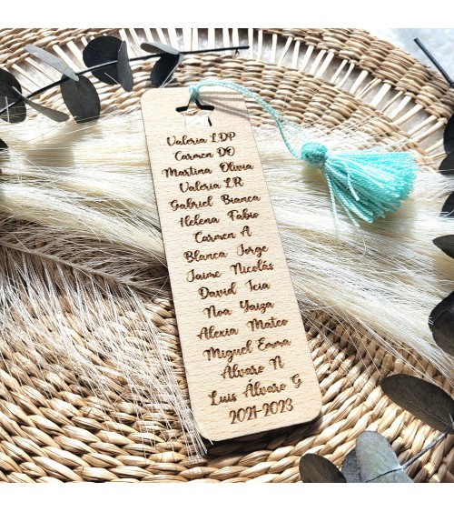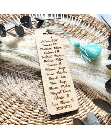 El marcapágina llevará el nombre del profesor, una frase personalizada y si deseá los nombres de los niños y la fecha del curso o promoción.