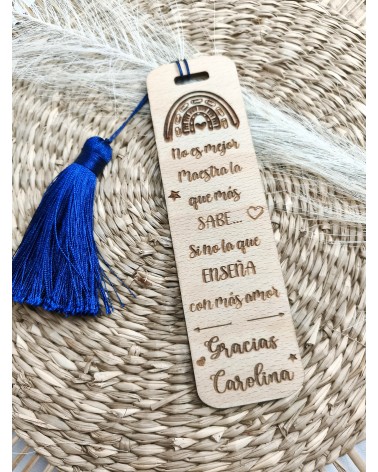 El marcapágina llevará el nombre del profesor, una frase personalizada y si deseá los nombres de los niños y la fecha del curso o promoción.