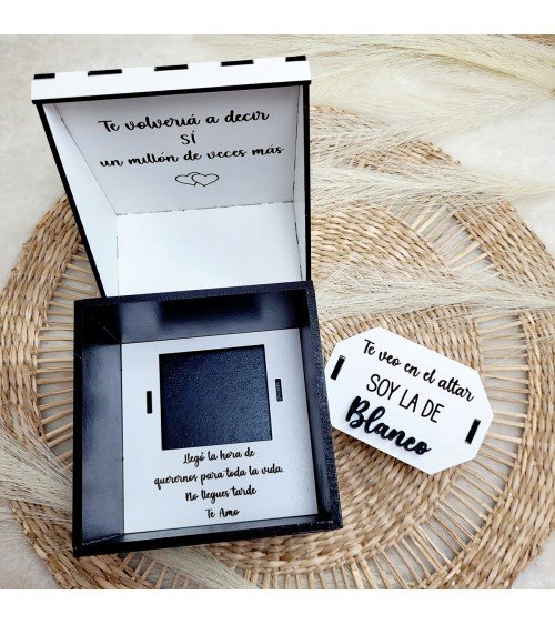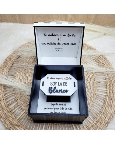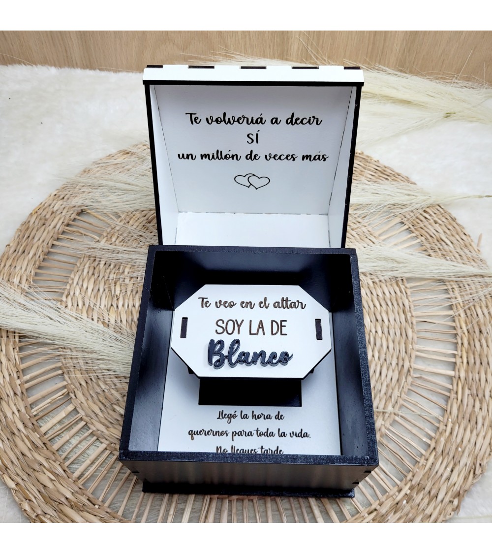 Esta caja para reloj en madera personalizada tan bonita , puedes personalizar todo el texto y ponerle a tu persona especial ese mensaje tan importante que le quieres decir antes del gran moment