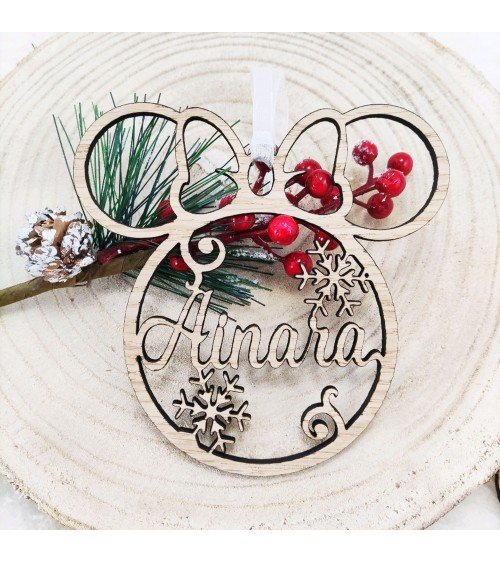 No olvide guardar su personalización para poder añadirla al carritoDa un toque mágico y divertido a tu árbol con nuestra bola de Navidad con silueta de Mickey o Minnie, elaborada en madera de roble de alta calidad. Su diseño combina el encanto clásico de la Navidad con la ternura de los personajes más queridos de Disney.