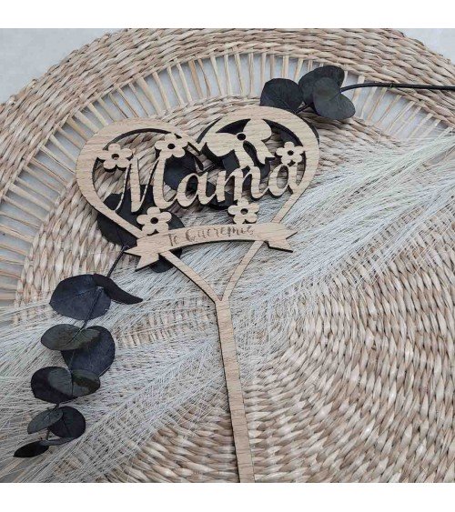 Fabricado en madera de rechapado roble, este topper combina un diseño elegante con la calidez de un material natural. Es perfecto para decorar tartas, ramos de flores, cestas de regalo o centros de mesa en celebraciones como el Día de la Madre, cumpleaños u otras fechas especiales.