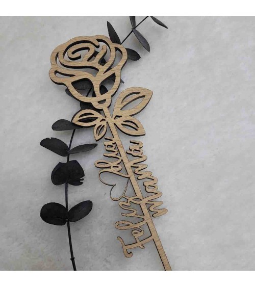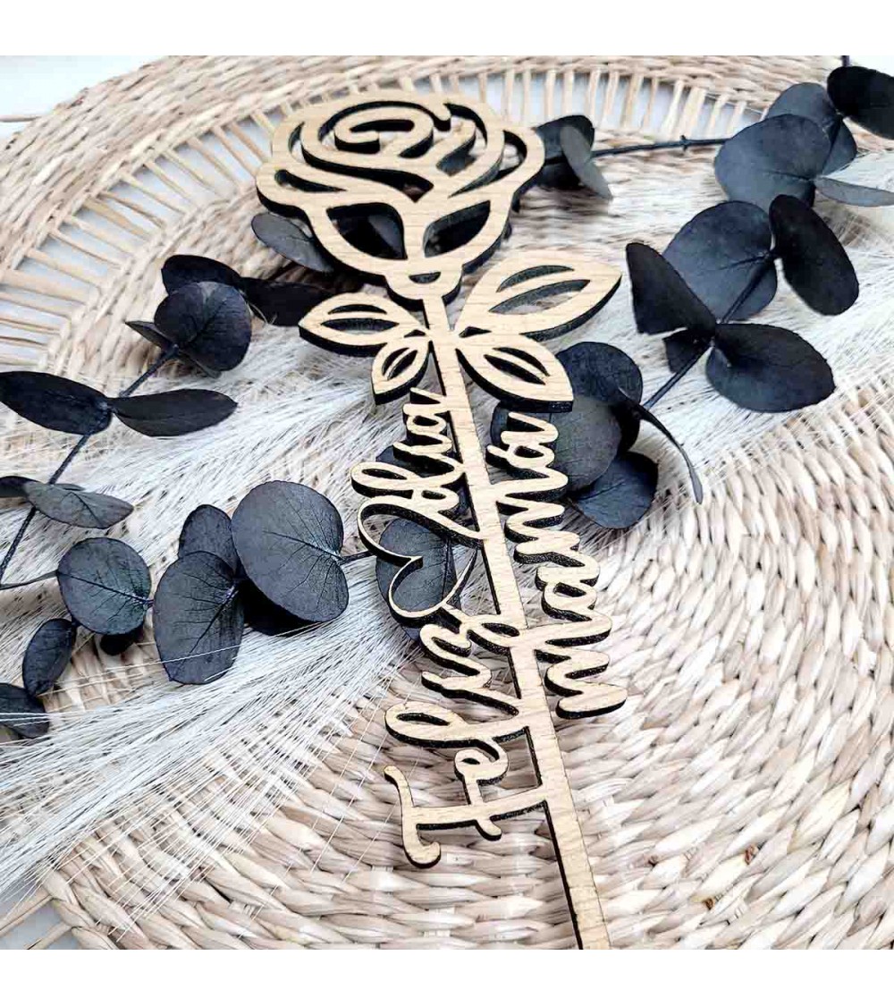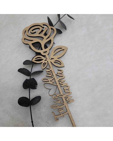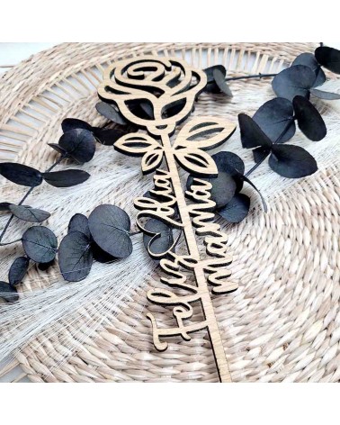 Hecha de madera de rechapado roble, la rosa mide 27,3 cm de alto y 8,2 cm de ancho, el tamaño perfecto para complementar cualquier regalo o como pieza central en un ramo o cesta. Su acabado natural y elegante la convierte en un detalle que mamá podrá conservar con cariño por siempre.